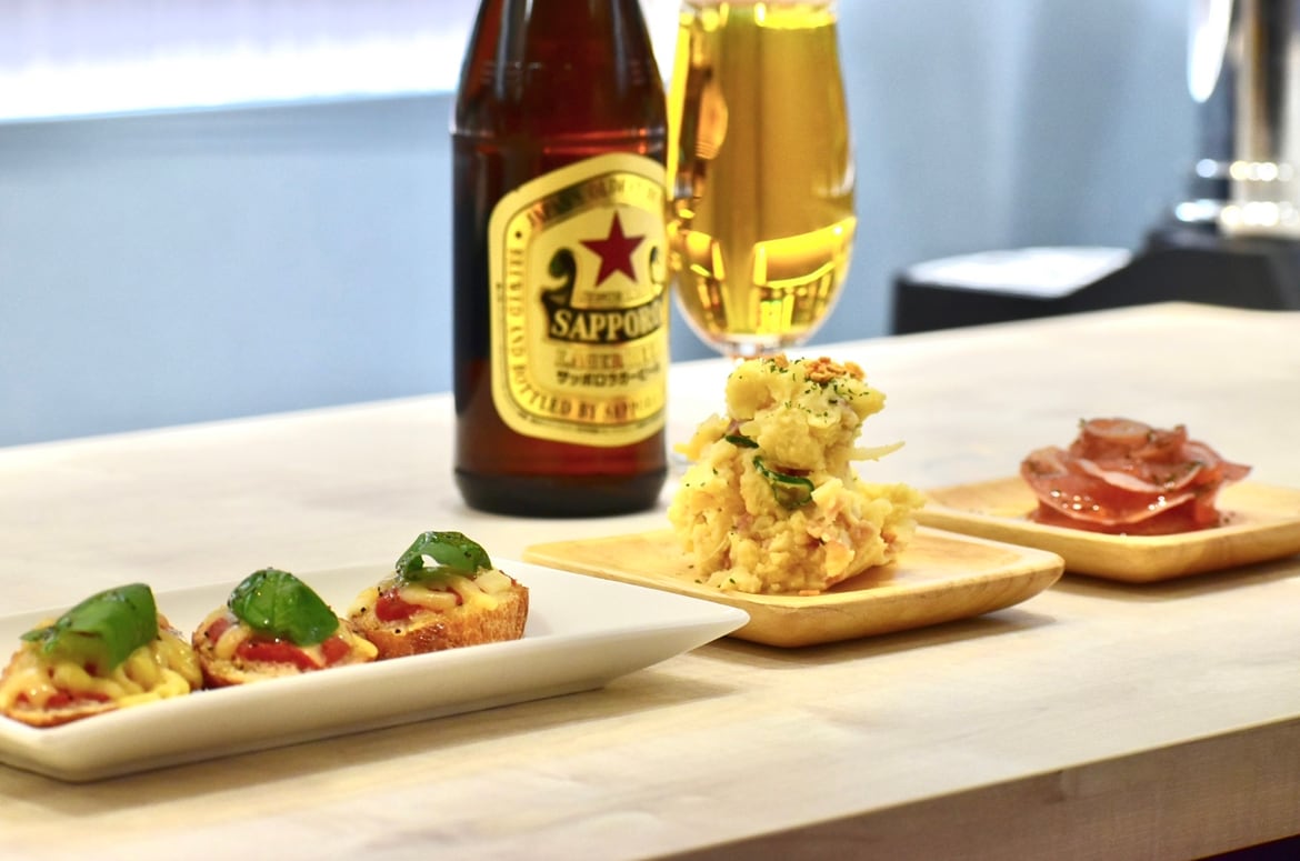生ビールはSORACHI1984を採用しており、そのまま飲んでもビアカクテルに合わせても◎ サーバーから注ぐスパークリングワインはいつでも栓を開けた直後のようなソーダ感で